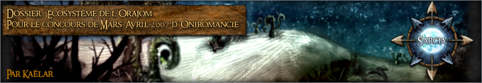 Bien le bonjour à toi qui lit ceci! Si tu es ici c'est sûrement pour une raison, soit parce que tu es un participant au concours pour lequel ce dossier fut créé, soit c'est parce que mon univers t'intéresse ou bien tout simplement par curiosité, celà m'importe peu tant que le contenu que vous trouverez sera intéressant à découvrir pour vous je suis content. Ce dossier présentera l'Écosystème du pays de l'Orajom, un gigantesque désert ou la végétation et la vie n'est pas aussi denrée rare qu'on pourrait le croire. Vous y trouverez un texte décrivant le pays et ses environs avec quelques précisions sur l'Univers afin de vous y retrouver, vous trouverez également une section sur la faune de ce pays avec images "in game" , une section flore vous attends également avec toujours pleins d'images "in games" à vous mettre sous la dent, puis une section Chaine alimentaire qui montre les diverses relations existant entre la faune et la flore. Voilà, c'est sur cette note que je vous laisse explorer ce mini-site à votre guise!