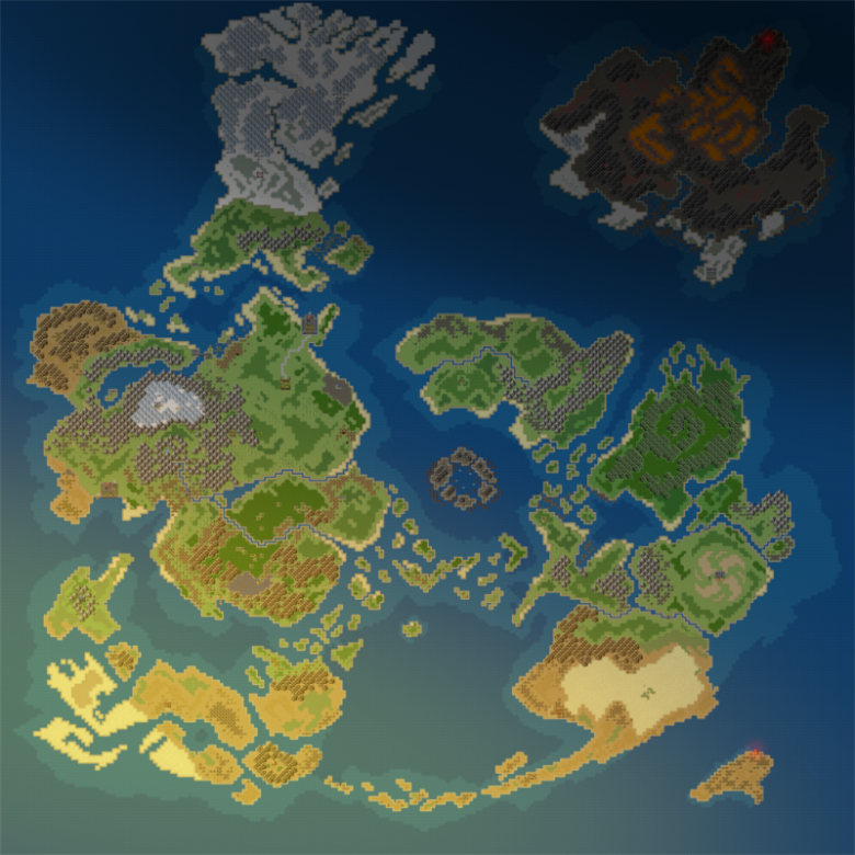 son village de départ évolutif avec des villageois à recruter, sa musique originale et ses systèmes de progression (montée en niveaux, apprentissage de compétences, forge, haut faits, etc.).