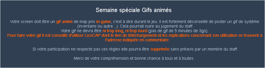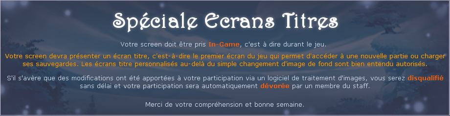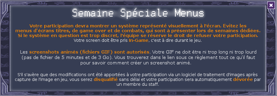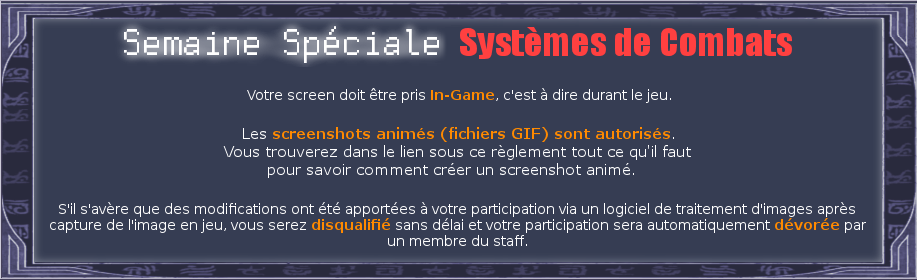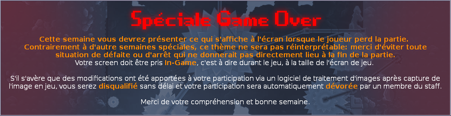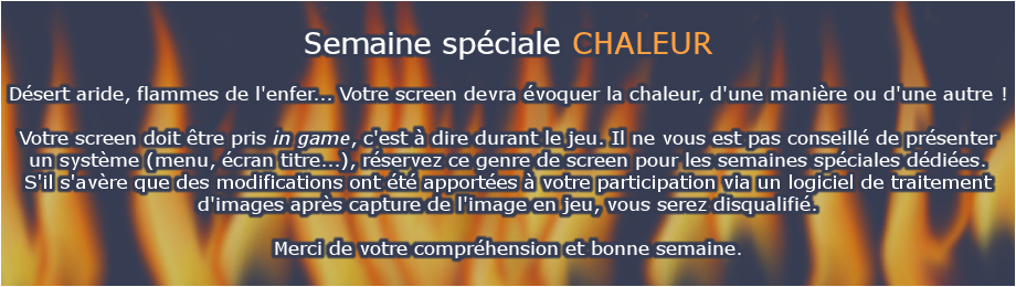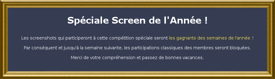 Proposez votre screen! Voir les propositions de la semaine en cours Voir les résultats des semaines précédentes