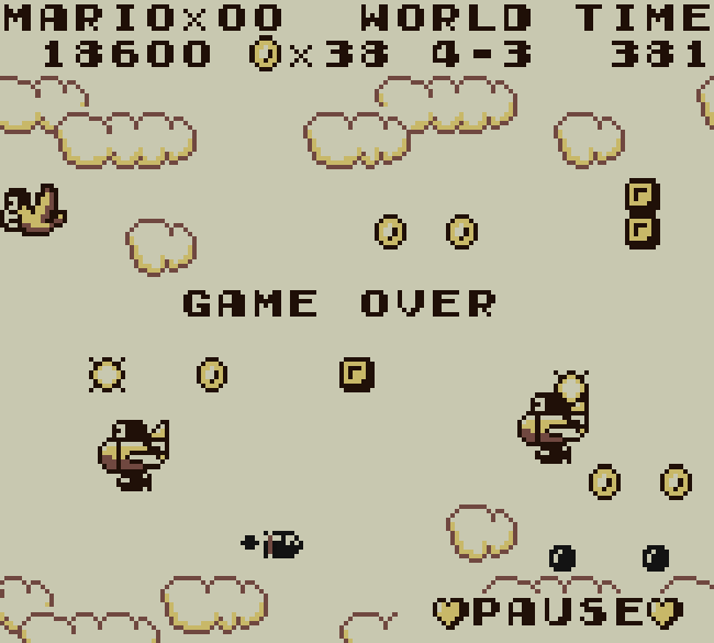 - la pause, qu'on peut déclencher même pendant l'écran de game-over