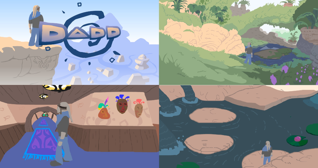 Il s'agit d'un vieux prototype de mon jeu fait en 2012 lors d'un stage d'infographie à l'aide du logiciel Flash. Cette version est une version retravaillée en 2024 et 2025 pour rajouter un peu plus de contexte, de parcours à explorer, pour rallonger un peu la durée de vie, et développer davantage l'univers. J'ai aussi tenté d'améliorer et rajouter de nouvelles animations, angles de vues, situations pour Teltok comme la possibilité de nager par exemple. Dadd est un univers original imaginé par mes soins, c'est un projet avec des décors et personnages de mon enfance et de mon adolescence. La version la plus ancienne date de 2000 ou 2001.