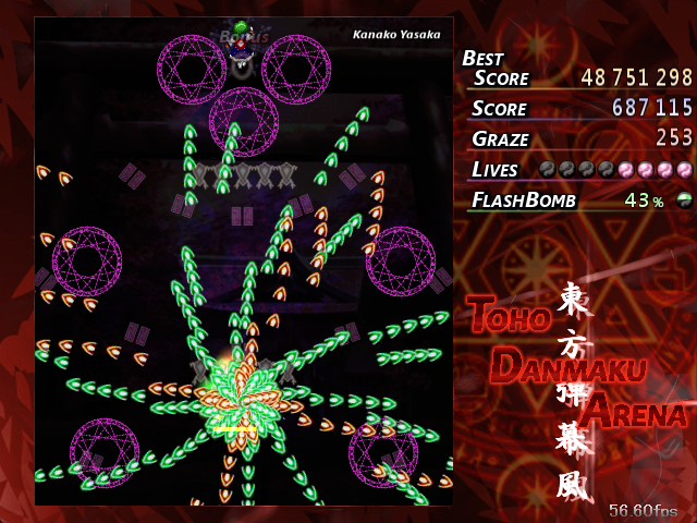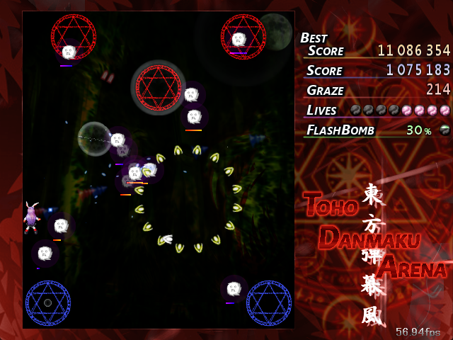 Touhou Danmaku Arena est un vieux fangame réalisé sur Danmakufu 0.12m. A l'origine, il s'agit d'un stage stand alone réalisé pour une game jam à quelques heures de la fin. Au final, c'est devenu un jeu complet.