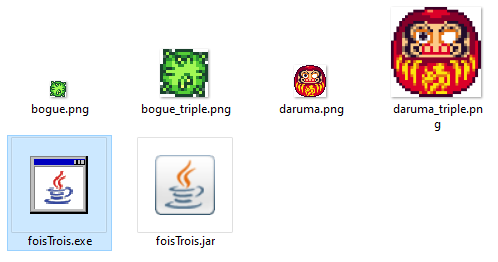 foisTrois crée un clone trois fois plus grand des images PNG du dossier. Utile pour convertir des graphismes 16*16 en graphismes 48*48 pour RPGMaker MV et MZ.