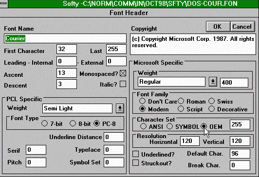 Auteur: Dave Emmett Site: http://techref.massmind.org/techref/member/softy-font/index.html Année: 2002 Compatibilité: Windows 3.1/95/98/NT Télécharger (0.227 Mo, en Anglais)