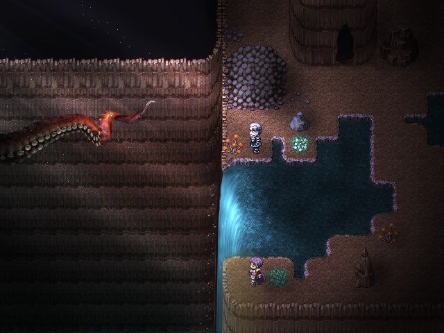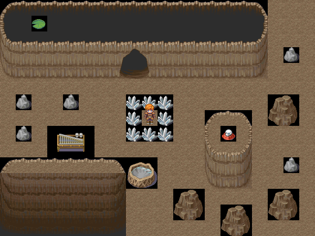 Un screen de mon nouveau jeu, Fushigi na Hora, dans lequel l'héroïne se fait avaler par une caverne. Ici elle rencontre Mathusalem, le vieillard qui garde la caverne.